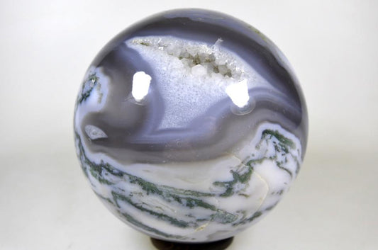 Large Druzy Moss Agate Crystal Sphere 8.4cm