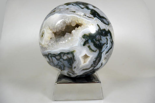 Large Druzy Moss Agate Crystal Sphere 9.8cm