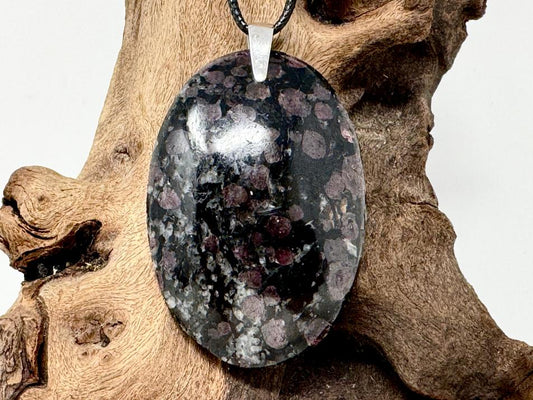 Garnet in Black Tourmaline Pendant Oval Large 5.7cm