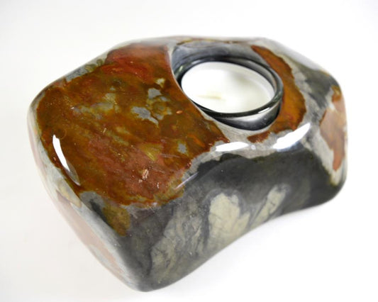 Large Polychrome Jasper Crystal Tea Light Candle Holder 16cm