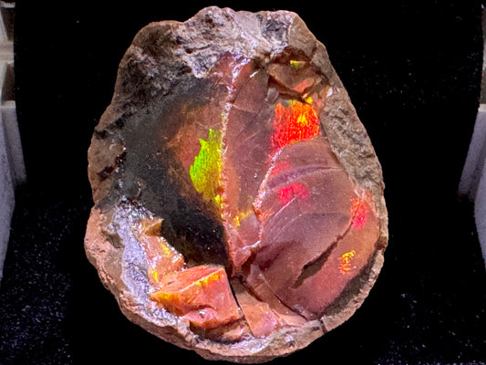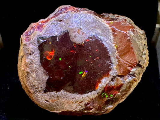 Shop Ethiopian Shewa Opals for sale online: explore a range of unique Chocolate Opal Gemstones which flash with a fiery red, orange, yellow, and green opalescence akin to the mesmerising play of colour seen in fire opals.