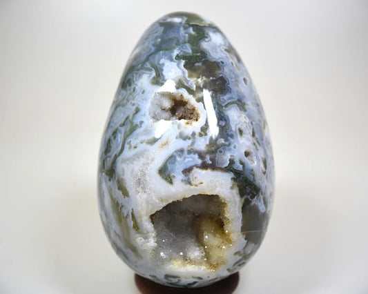 Druzy Moss Agate Crystal Egg 6.2cm