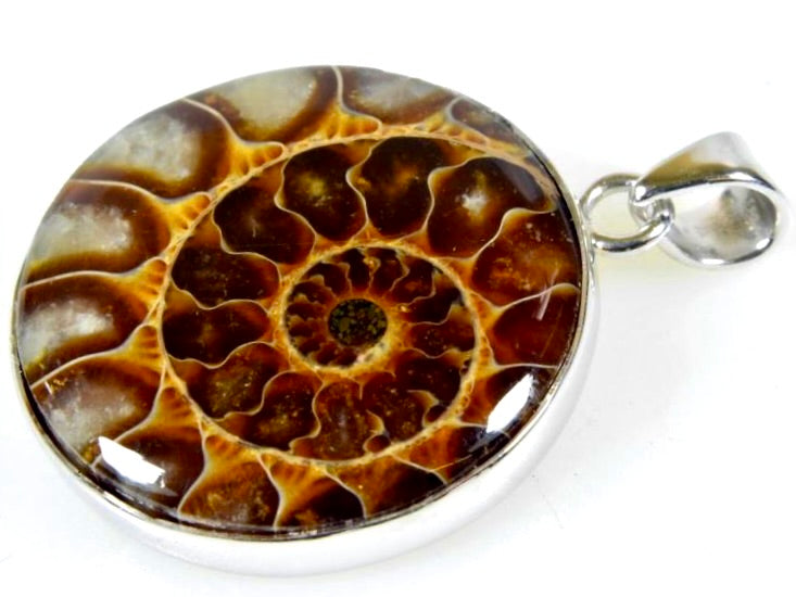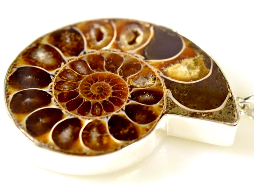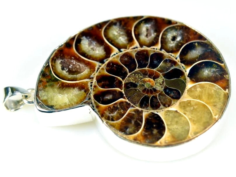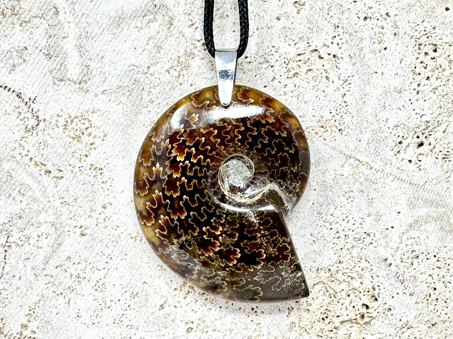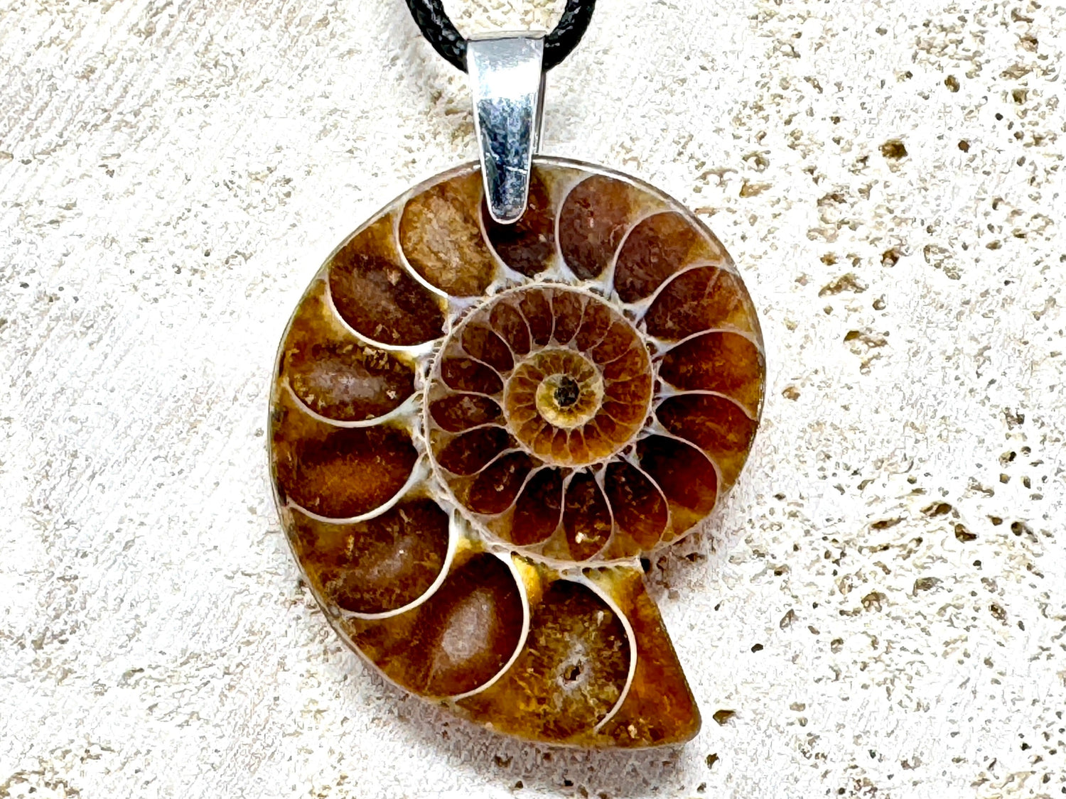 Hand-made: cut and polished sections from high-quality, real Ammonites Drilled with a...