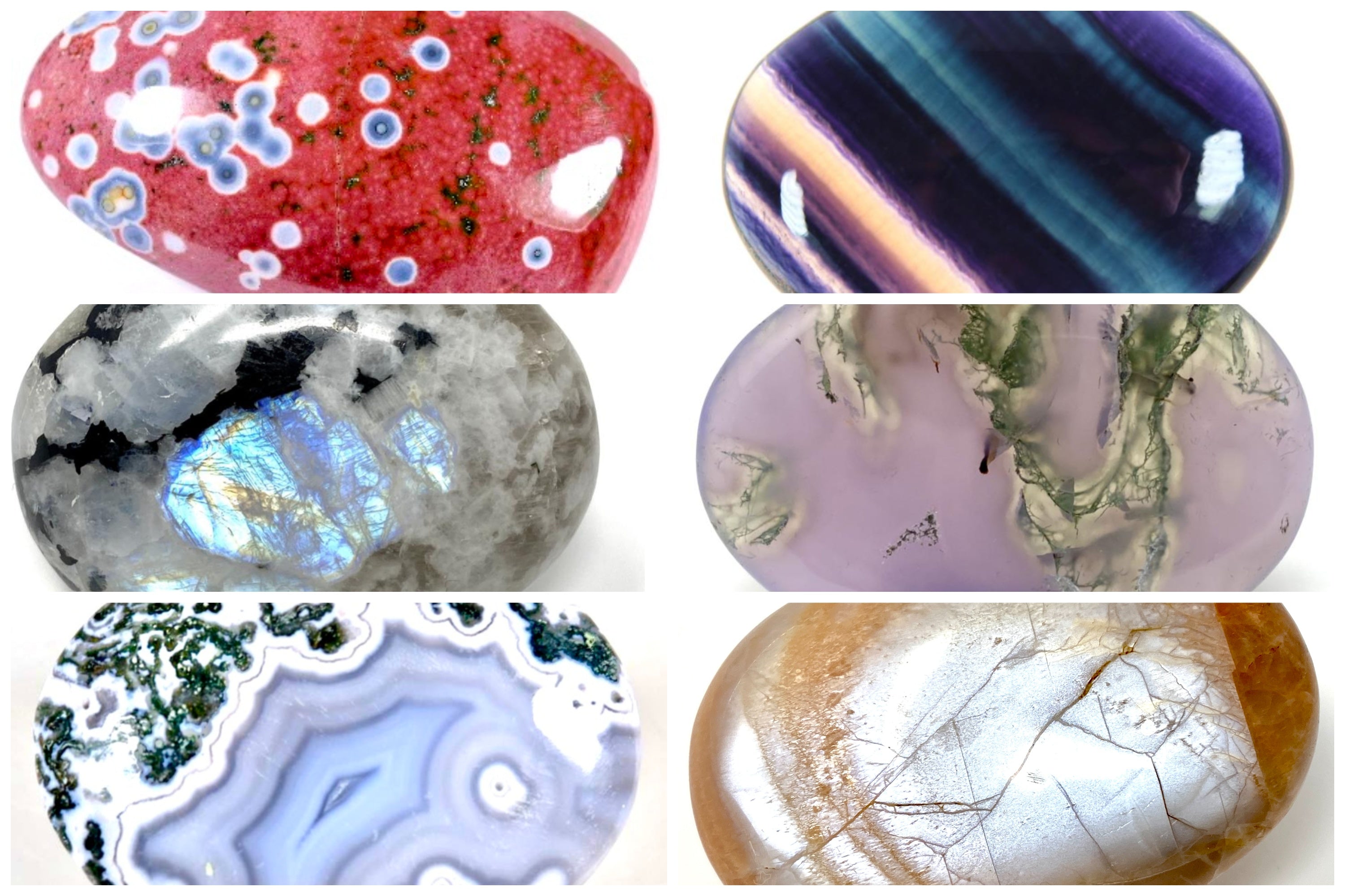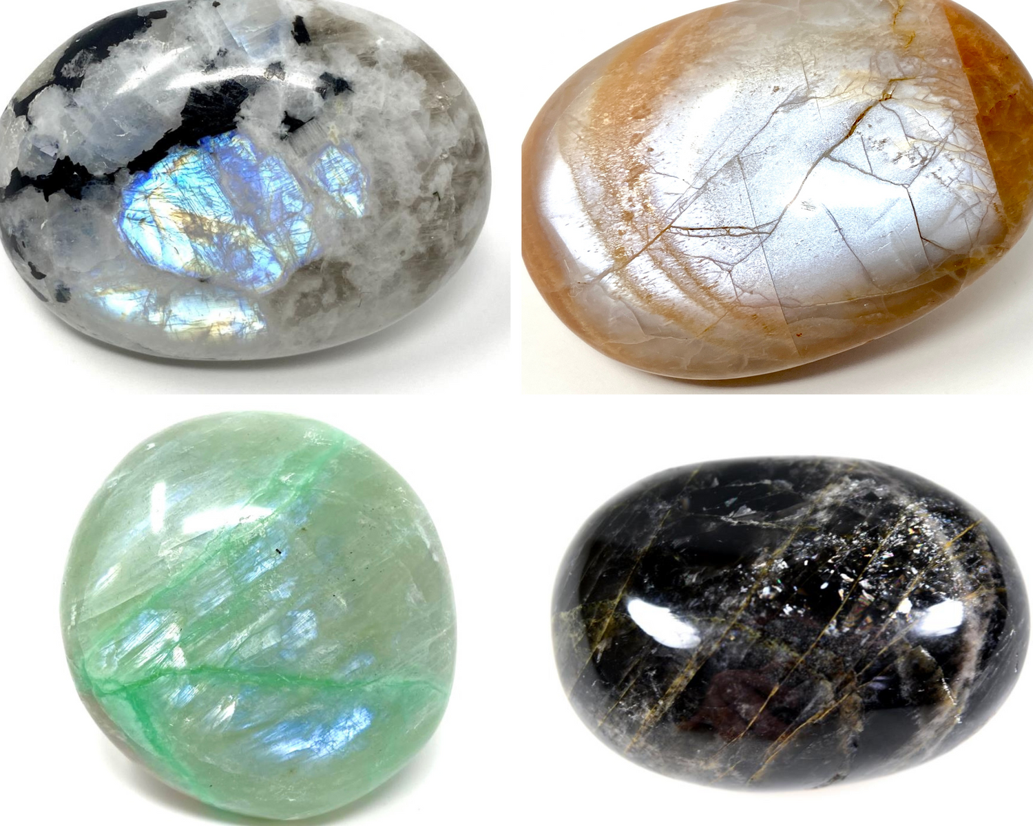 Explore a range of Moonstone Pebbles & Palm Stones, including Rainbow Moonstone, Peach Moonstone, Green Moonstone/ Garnierite and more