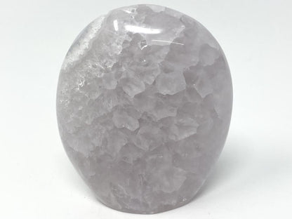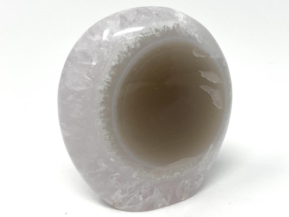 This Agate freeform has been carefully hand-polished to enhance the smooth, glossy lustre of the stone's surface, and also displays a large section of exposed crystals.