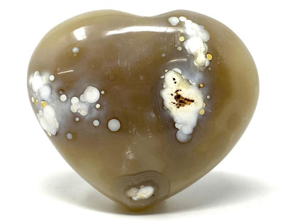 This gorgeous Agate Crystal Heart measuring 6.1cm wide has been carefully cut and polished into a crystal heart shape from natural Agate Stone, and displays subtle grey, brown, and white Agate patterns.