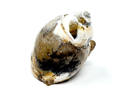 A striking Shell Fossil and Steinkern Fossil, this Agatized Fossil has been carefully polished by hand to preserve its intricately patterned coiled shell.