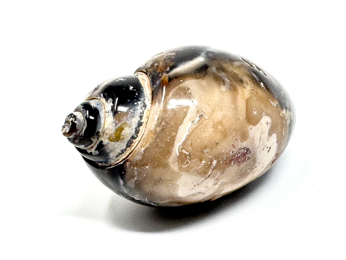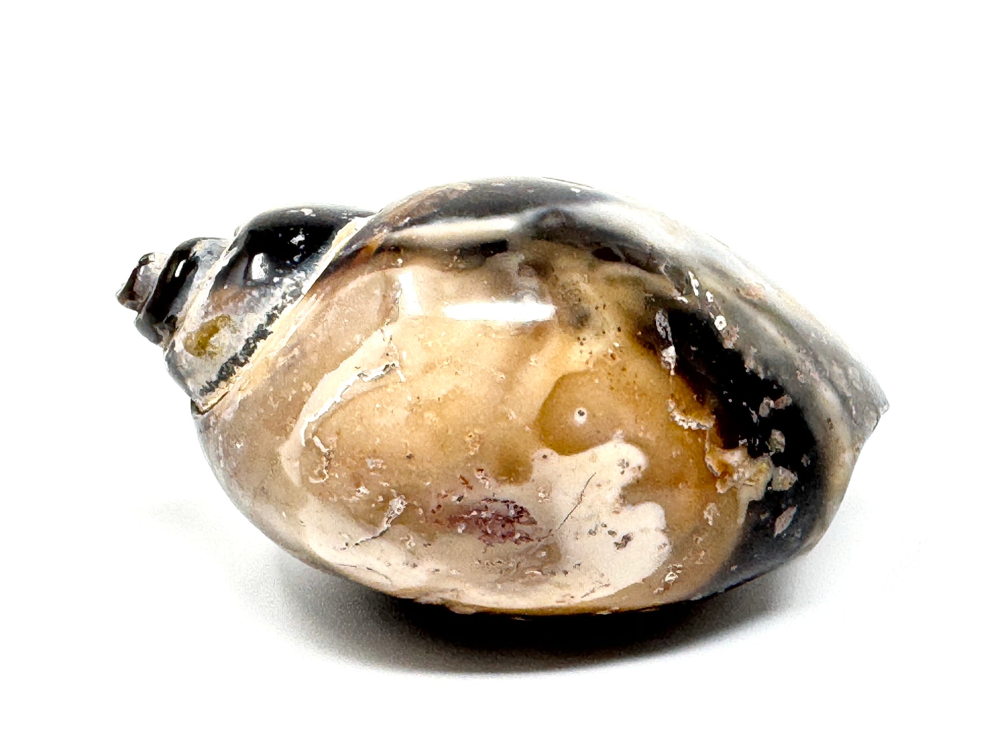 The colours and sleek, smooth polish of the Chalcedony Replaced Gastropod Fossil Shell are mesmerising.