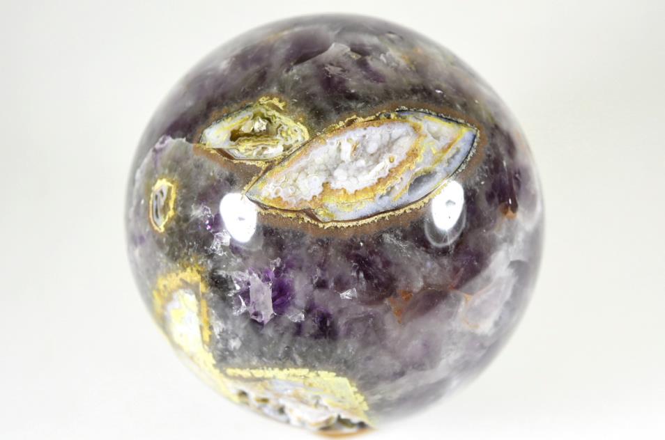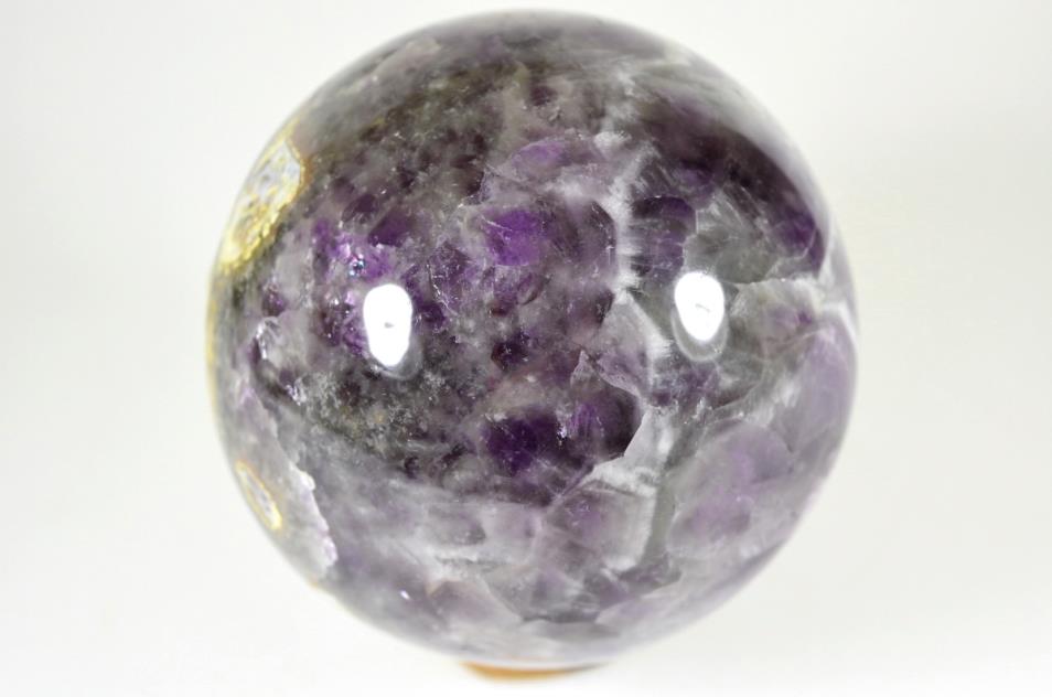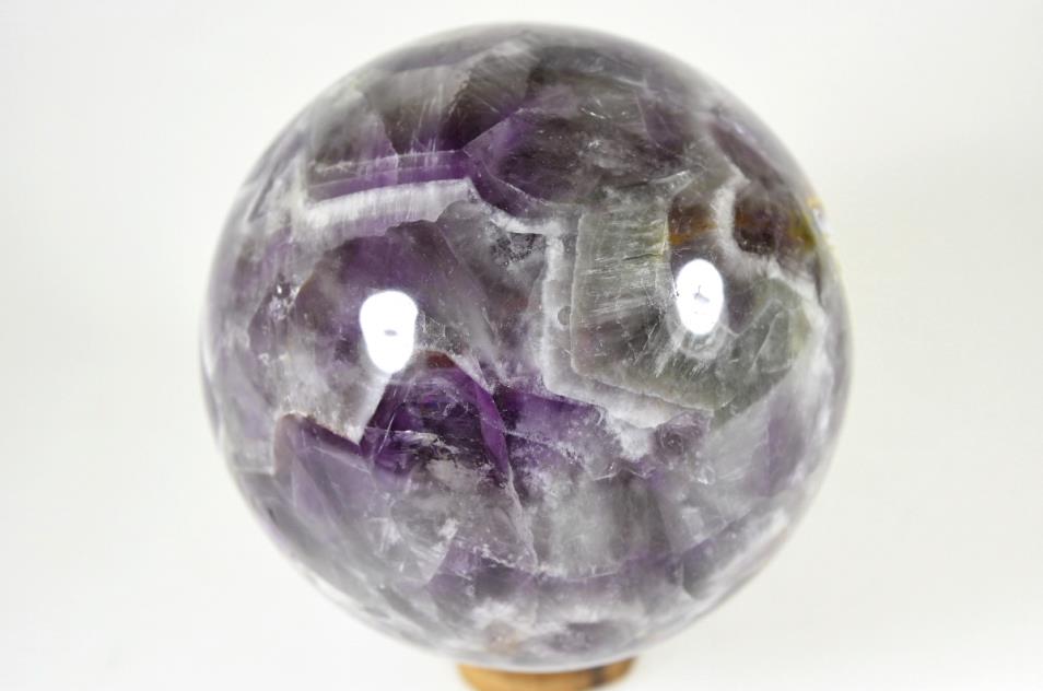 Amethyst Quartz Sphere crystal for sale from Madagascar. 10cm Diameter This wonderful unusual Amethyst Sphere has been made from high quality Madagascan Amethyst Quartz. Amethyst is the purple variety of quartz and the colours range from lavender to violet and a strong dark purple. Amethyst is found in crystals in various shades from lavender to dark purple.This beautiful sphere has been expertly cut and has a beautiful polish on it and comes with it's own display stand.It is a perfect addition for the collector or healer or just for interior design.