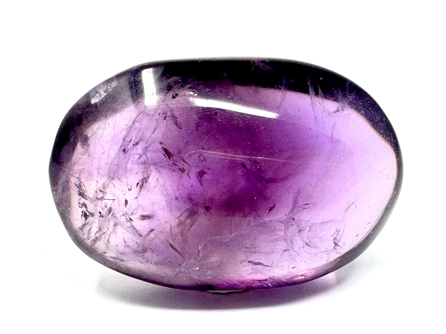 The natural Amethyst Crystal has been carefully cut and hand-polished into a sleek oval pebble shape or oval palm stone crystal shape.