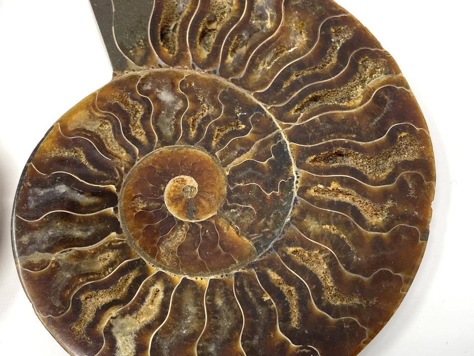 - Some minerals such as calcite seeped into the ammonite remains, leading to mineral replacements and ornately coloured interiors.