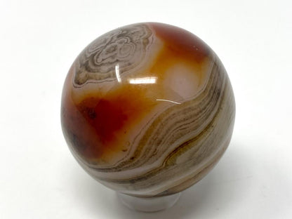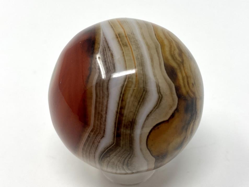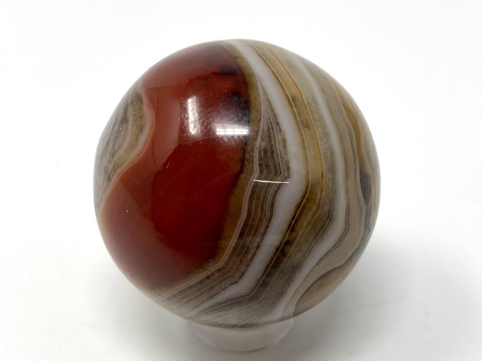 This dainty, gorgeous Banded Agate Crystal Sphere measures 3.8cm in diameter and displays stunning bands of red, orange, white, black, and grey, with patterns similar to Sardonyx and Carnelian.