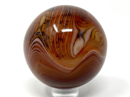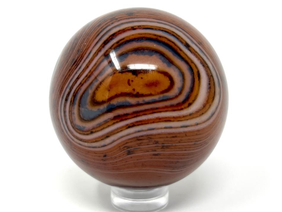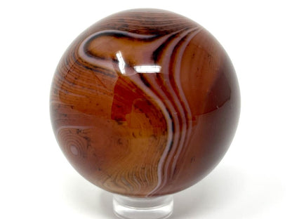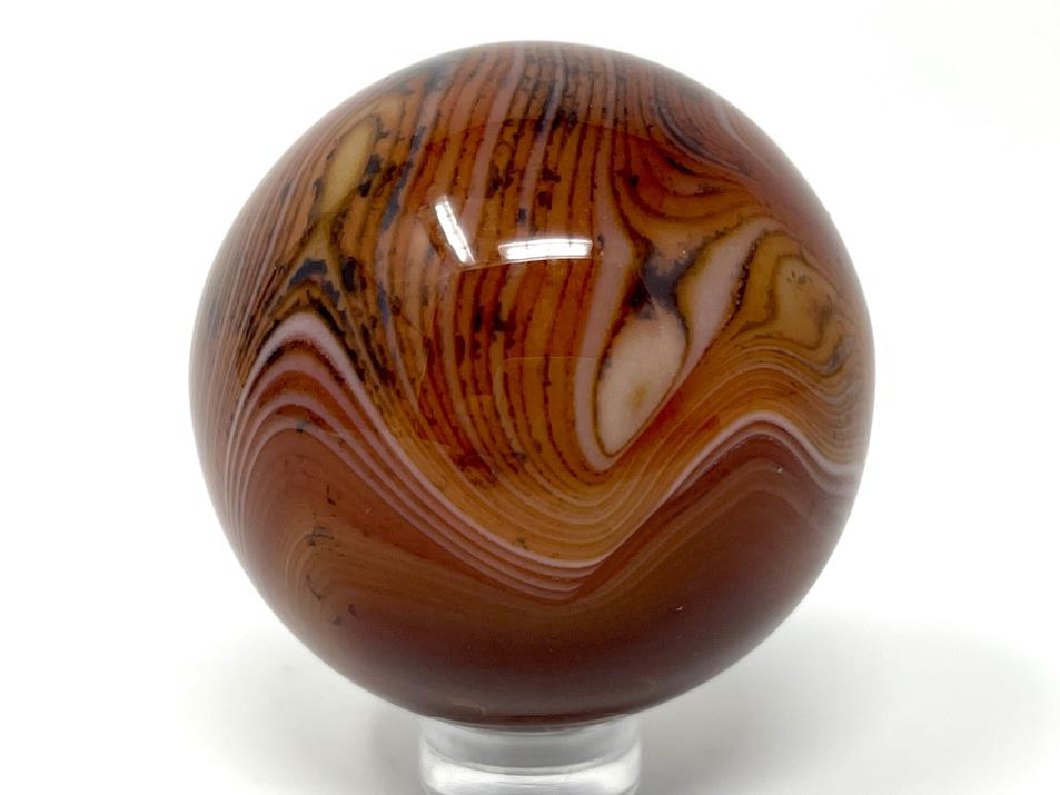 This gorgeous Banded Agate Crystal Sphere measures 4.7cm in diameter and displays stunning bands of red, black, orange, and white, with patterns similar to Sardonyx and Carnelian.