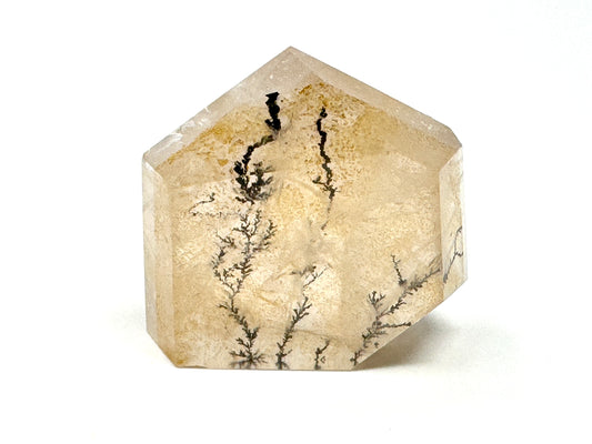 Quartz Agate is a combination of Clear Quartz and Blue-Grey Chalcedony Agate, often with some dendritic green Moss Agate (Tree Agate) patterns as well.