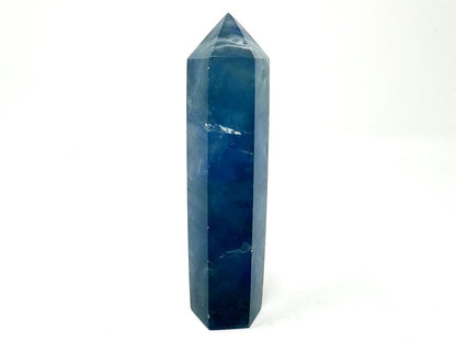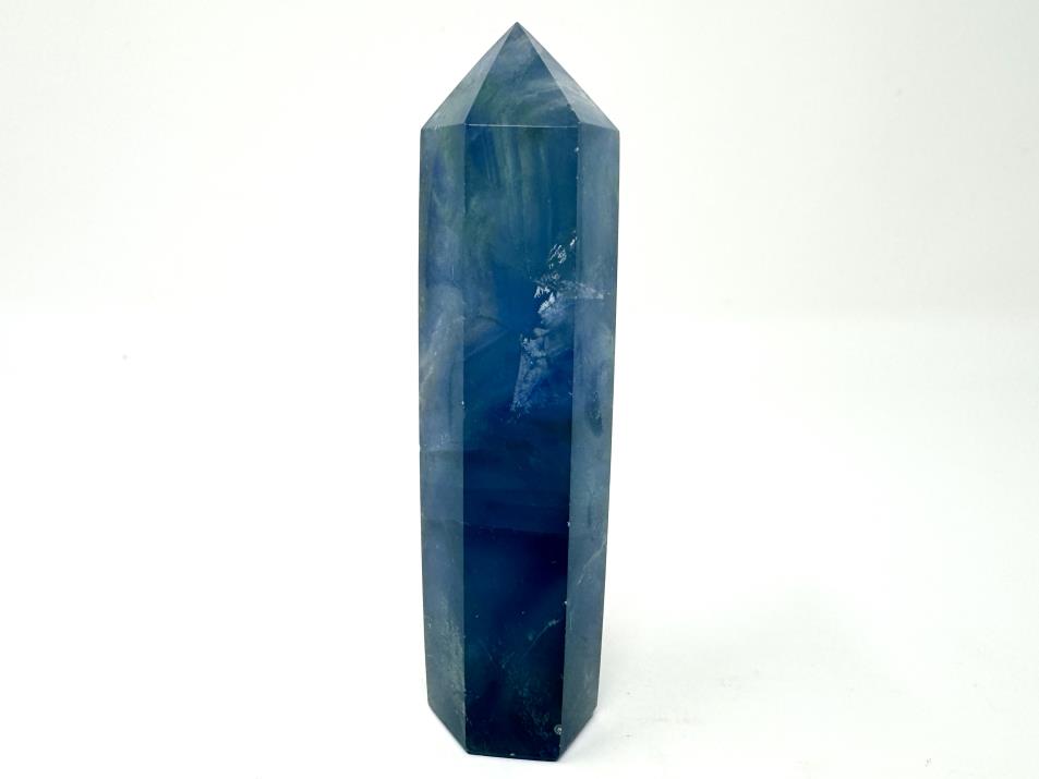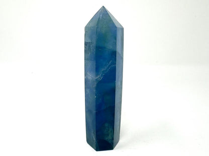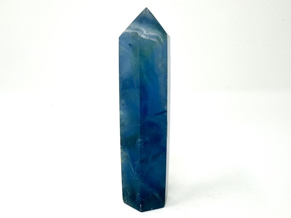 This gorgeous Blue Fluorite Crystal Point measuring 9.4cm tall showcases a gorgeous mix of bright aqua blues, dark blues, and hints of green.