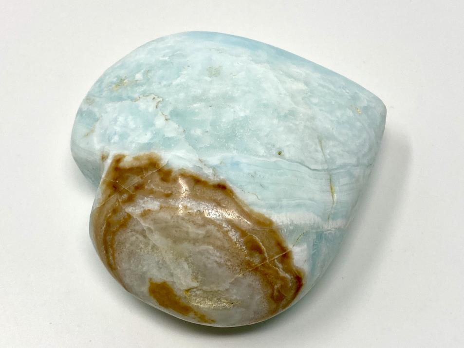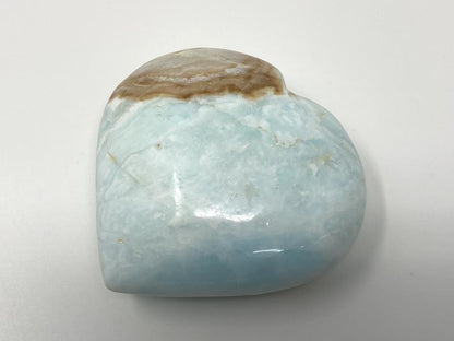 This gorgeous Large Caribbean Calcite Crystal Heart measuring 8.5cm wide displays a stunning sky blue base adorned with mesmerising swirls and bands of white and caramel-brown.