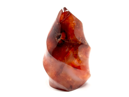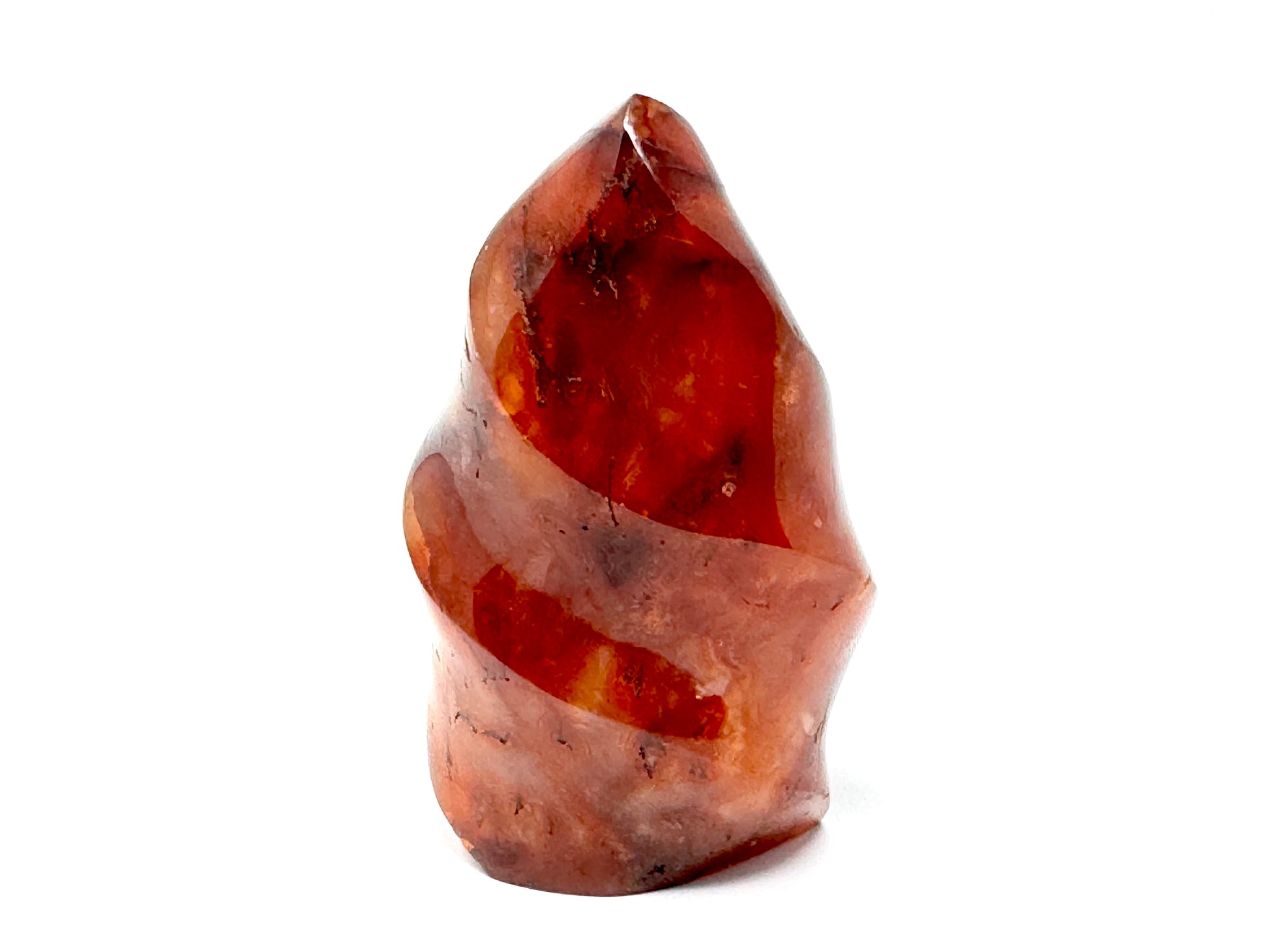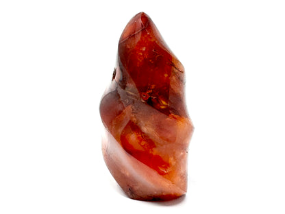The natural Carnelian Stone (Cornelian Stone) has been carefully cut and polished into a smooth Free-Standing Crystal Flame Shape, creating a striking Carnelian Flame Shape or Cornelian Flame Shape.