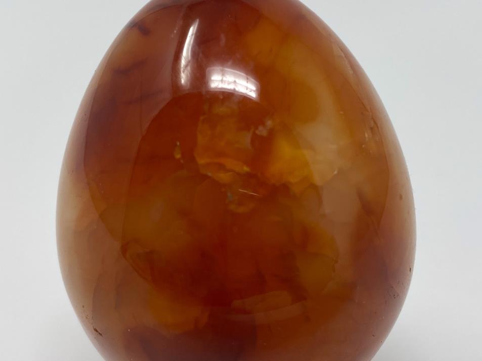 This gorgeous Carnelian Crystal Egg (also known as a Cornelian Crystal Egg, Carnelian Egg Crystal, or Cornelian Egg Crystal) measures 5.4cm tall and displays fierce, fiery orange and red colours, with patterns similar to Sardonyx and Banded Agate.