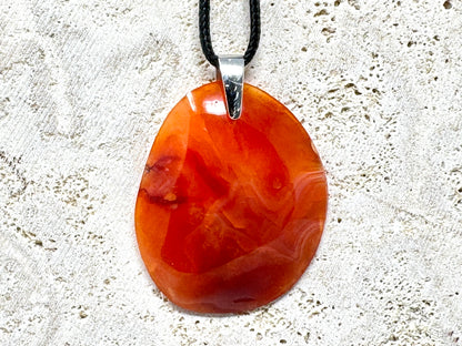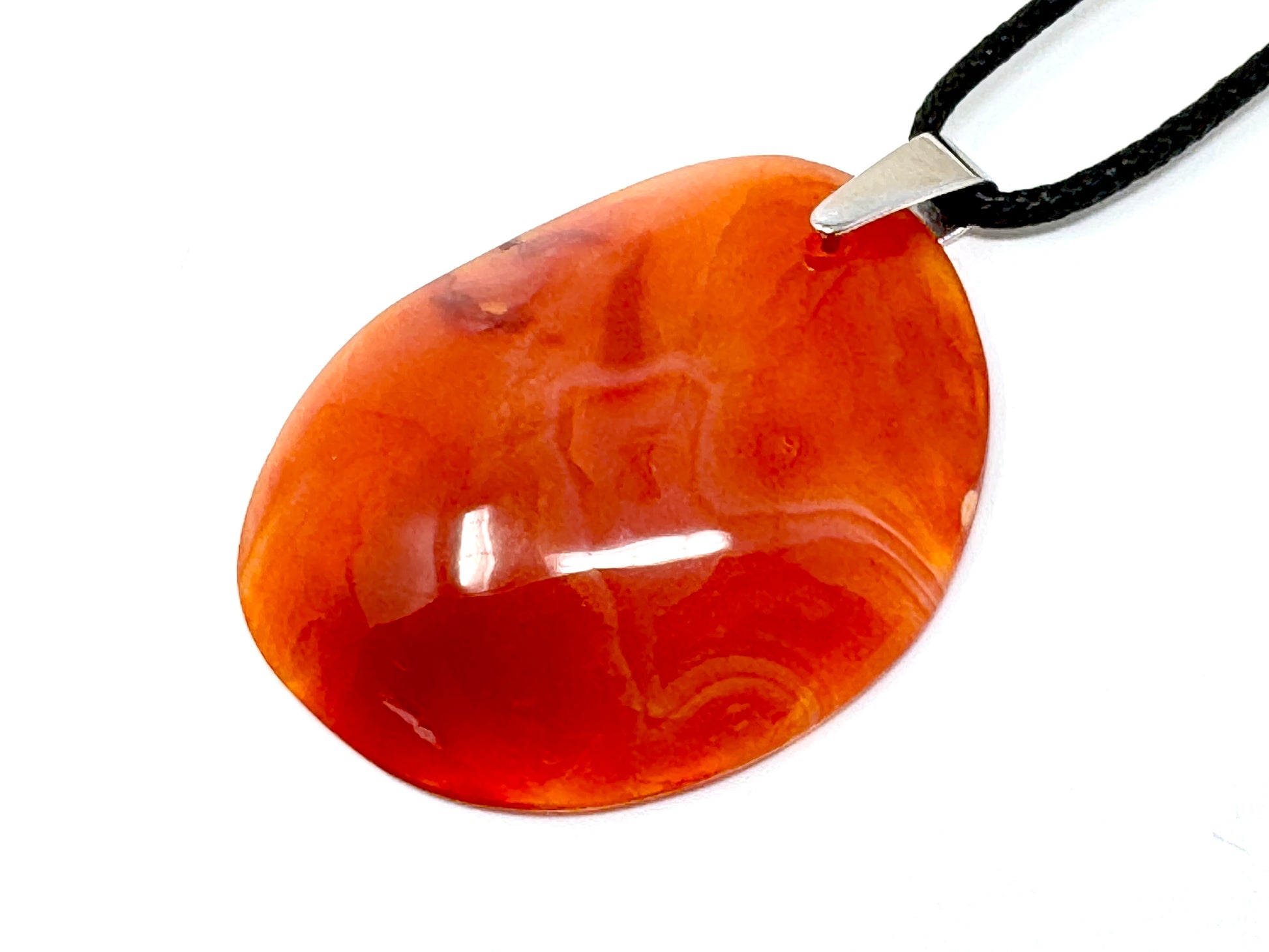 The Carnelian Pendant has been drilled and set with a Tarnish-Resistant Rhodium-Plated Stamped 925 Silver Bail, making it perfect for attaching to a chain to make a Carnelian Necklace and other types of Carnelian Jewellery.