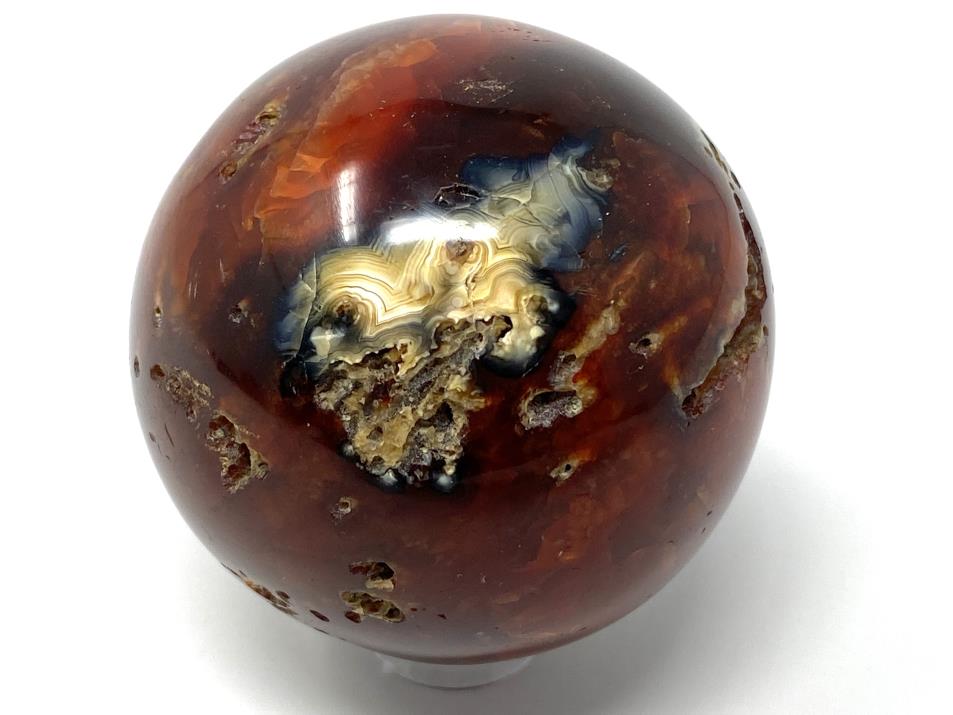 The Carnelian Sphere Crystal (Cornelian Sphere Crystal) is incredibly vibrant in colour, and is very similar to a Banded Agate Crystal or Sardonyx Crystal, which it would make a great companion piece to.