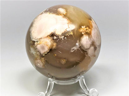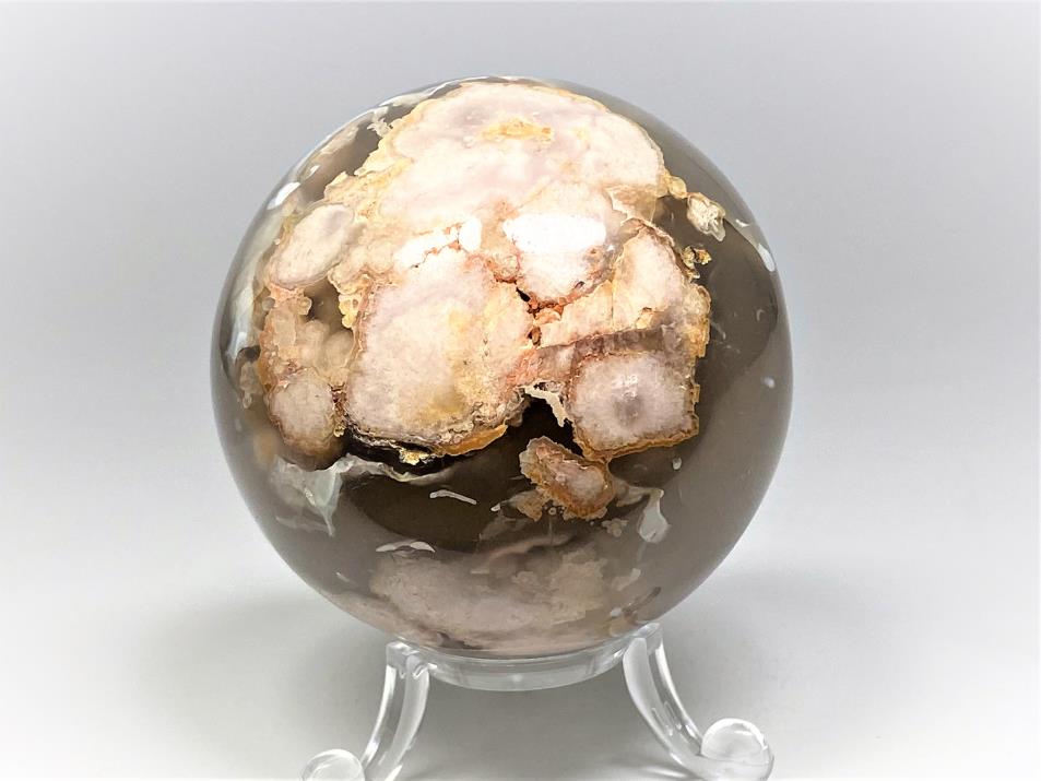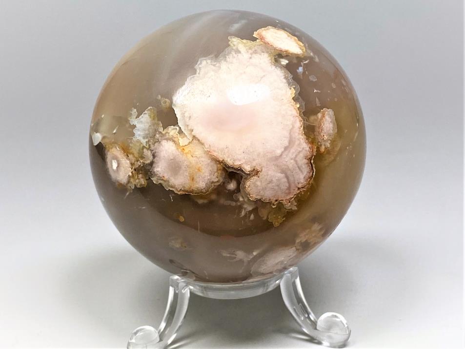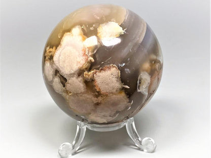 Adorned with pink-cream floral pattern inclusions, this Flower Agate Sphere is truly mesmerising.