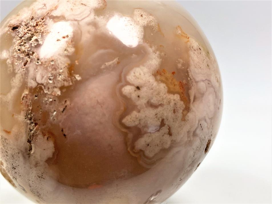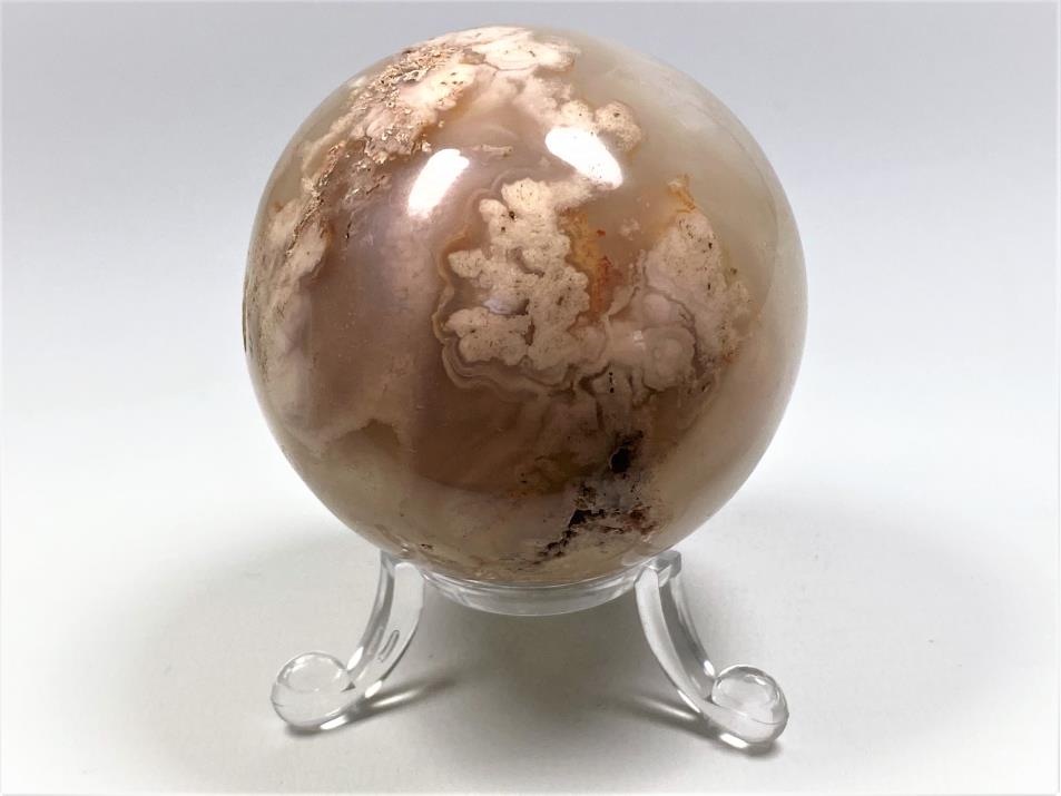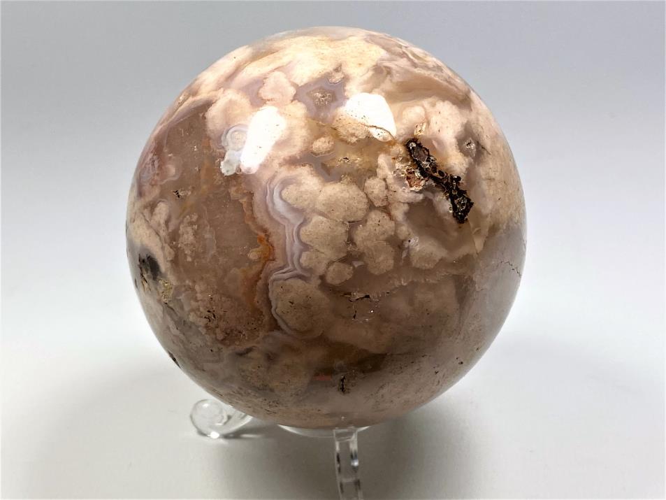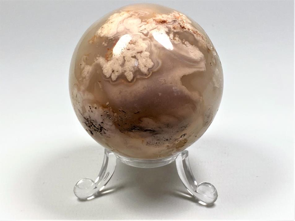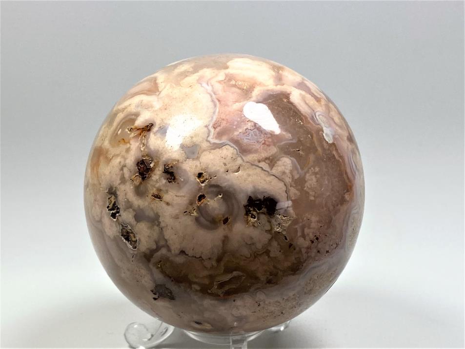 Adorned with pink-cream floral pattern inclusions, this Flower Agate Sphere is truly mesmerising.