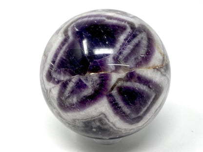This high-grade purple Chevron Amethyst Sphere measures 5.7cm in diameter.