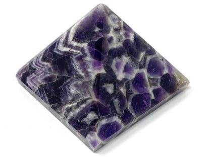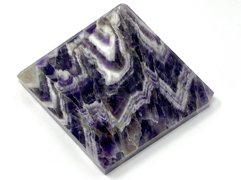 This high-grade purple Large Chevron Amethyst Pyramid Crystal displays an 8.5cm wide square base.