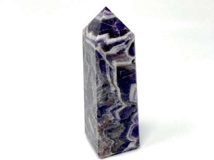 This high-grade purple Large Chevron Amethyst Tower measures 14.8cm tall.