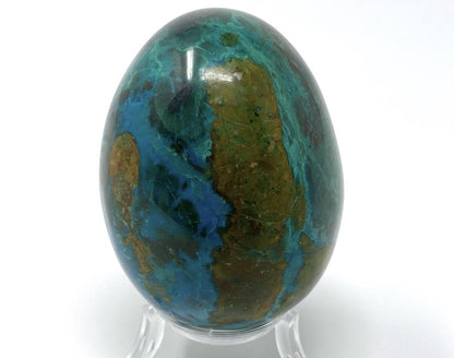 Crystal Eggs are wonderful as Crystal Display Pieces and make for unique home decor/ furnishings, and this Chrysocolla Egg Crystal would be a great companion piece to another Green Crystal Egg or Blue Crystal Egg.