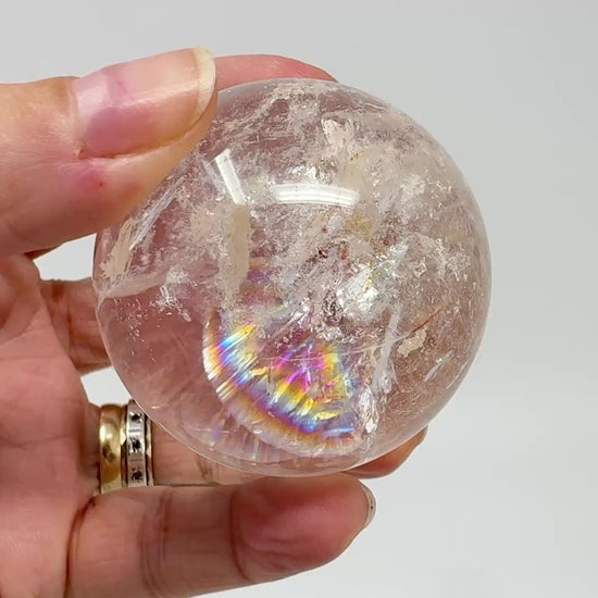 This beautiful high grade Clear Quartz Sphere measuring 6.7cm in diameter is very bright, clear and vibrant, and has been cut and polished to enhance the lustre of its faces.The high-grade Clear Quartz Crystal Ball also displays gorgeous shimmer and subtle Quartz crystal rainbows.