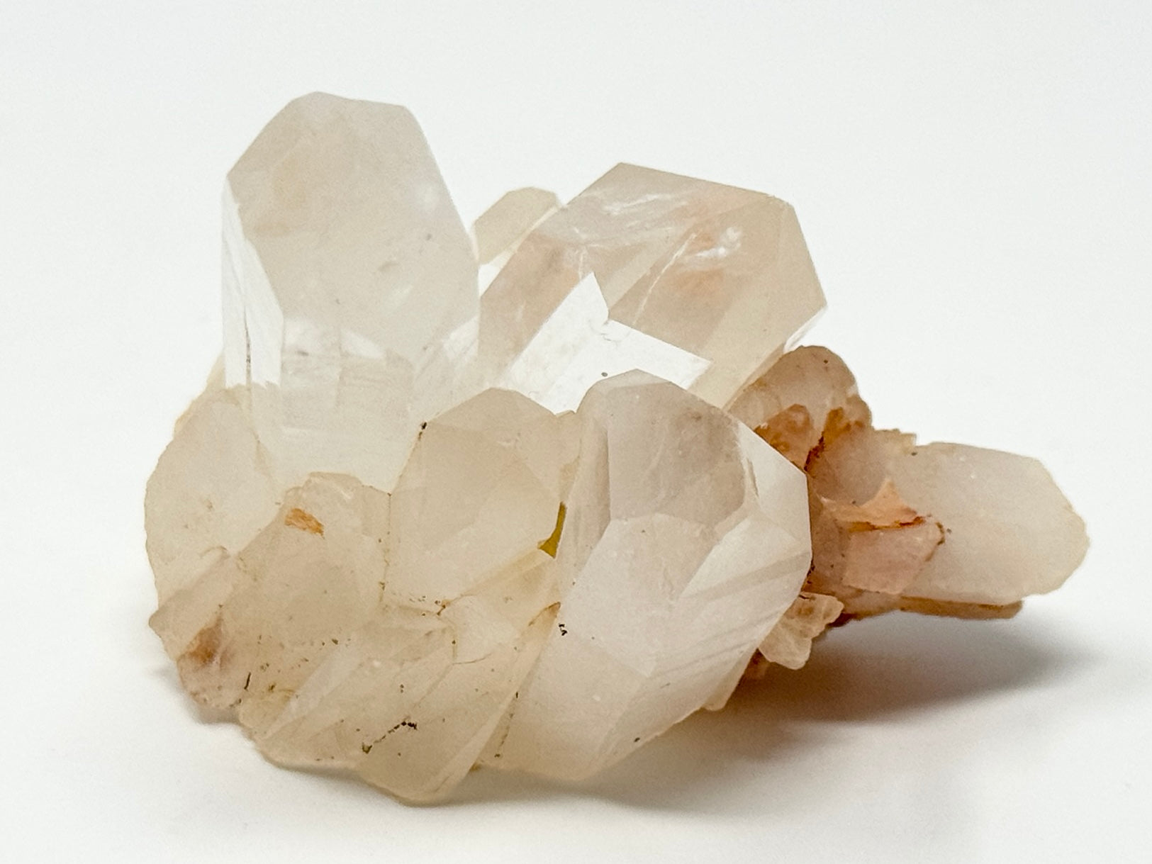 This gorgeous Natural Clear Quartz Group measuring 6.3cm long is very bright, clear and vibrant with a natural presence of iron giving a rich orange tone.