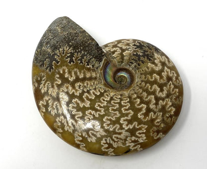 - Some minerals which seeped into the ammonite remains, such as colourful Calcite minerals, replaced the decomposed organic matter of the ammonite body over time, leading to the ornately patterned interiors and colourful chambers of Ammonite Fossils (via mineral replacements)