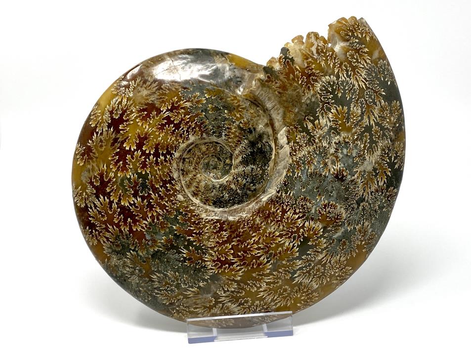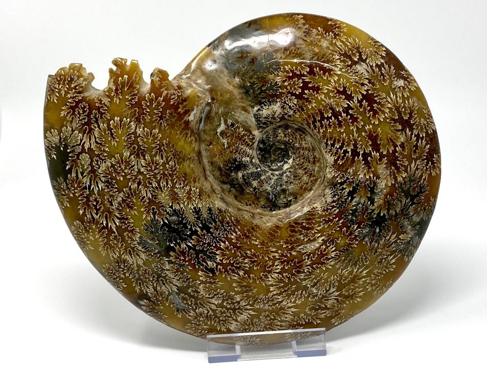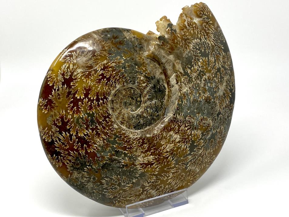 This stunning, high-grade Large Polished Ammonite Fossil from Madagascar, of the Cleoniceras Ammonite Species, measures a magnificently large 25.2cm wide and displays intricate swirling patterns amongst gorgeous chocolate-brown and caramel-coloured hues.