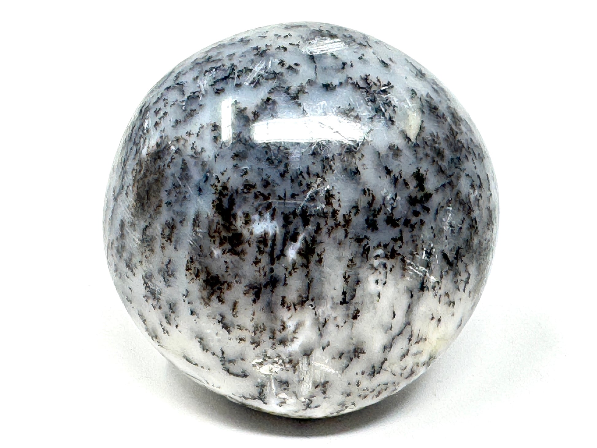 Dendritic Opal is a form of Common Opal which displays a typically milky-white opal body base colour, and a surface adorned with tree-like dendritic patterns caused by dendritic mineral inclusions/ dendrites (usually consisting of manganese and/or iron).