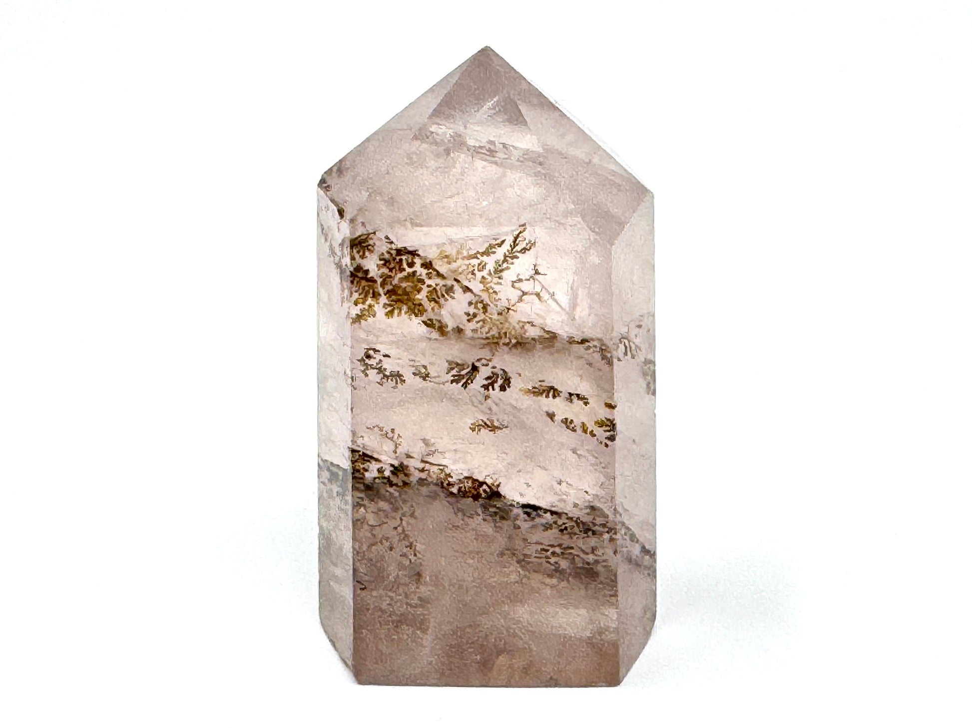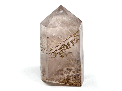 The natural Dendritic Quartz Stone has been carefully cut and polished into a Free-Standing Crystal Point.