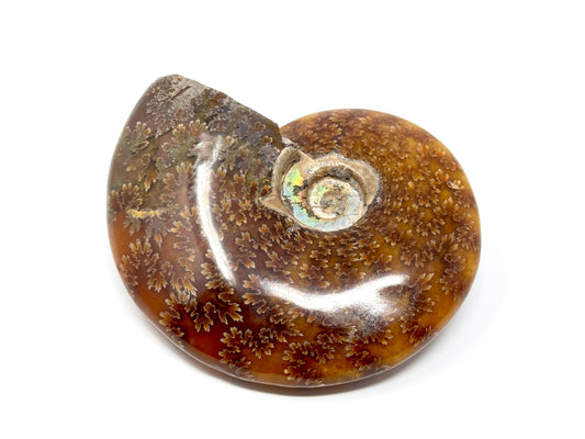 - Some minerals which seeped into the ammonite remains, such as colourful Calcite minerals, replaced the decomposed organic matter of the ammonite body over time, leading to the ornately patterned interiors and colourful chambers of Ammonite Fossils (via mineral replacements)