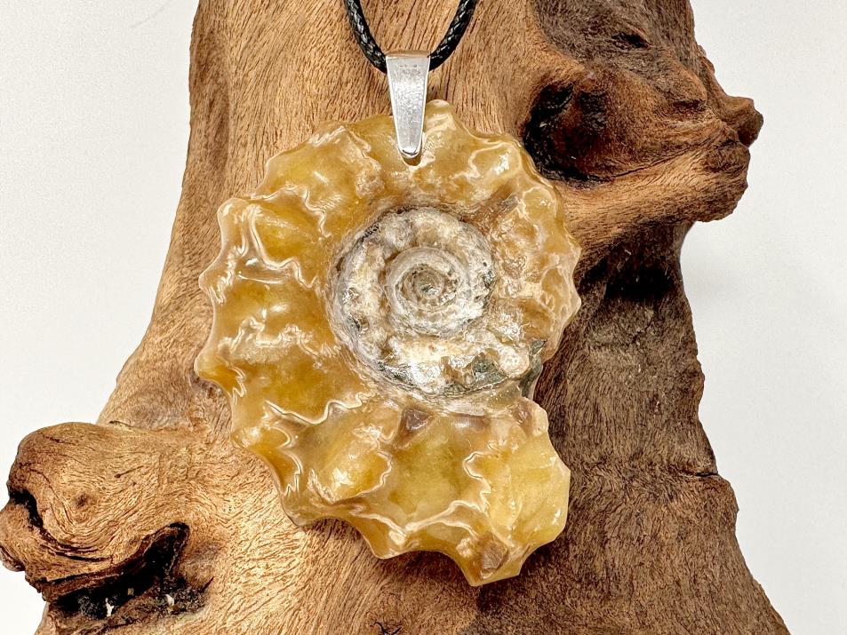 This stunning hand-made Polished Douvilleiceras Ammonite Pendant, created from a Real Ammonite Fossil of the Douvilleiceras Ammonite Species, is a highly unique Ammonite Accessory and Fossil Accessory.