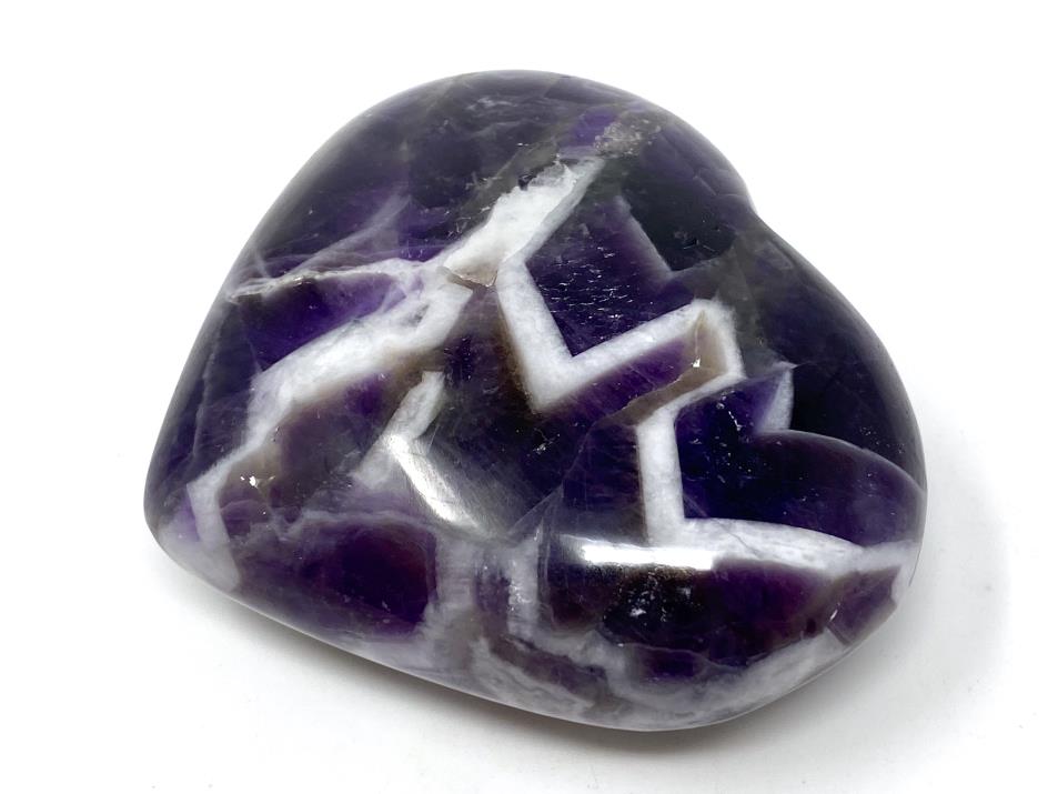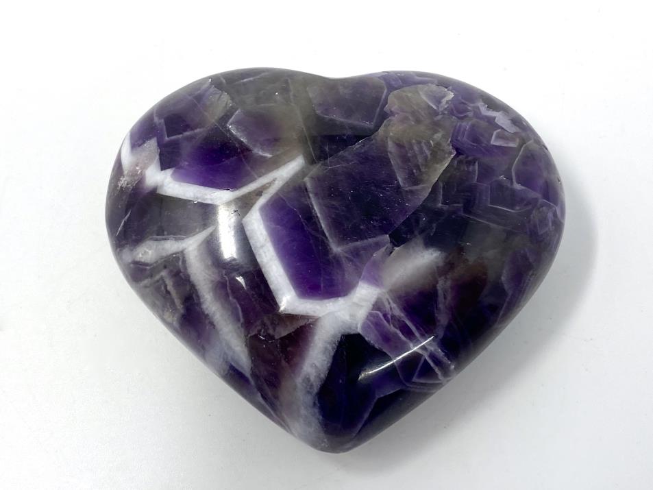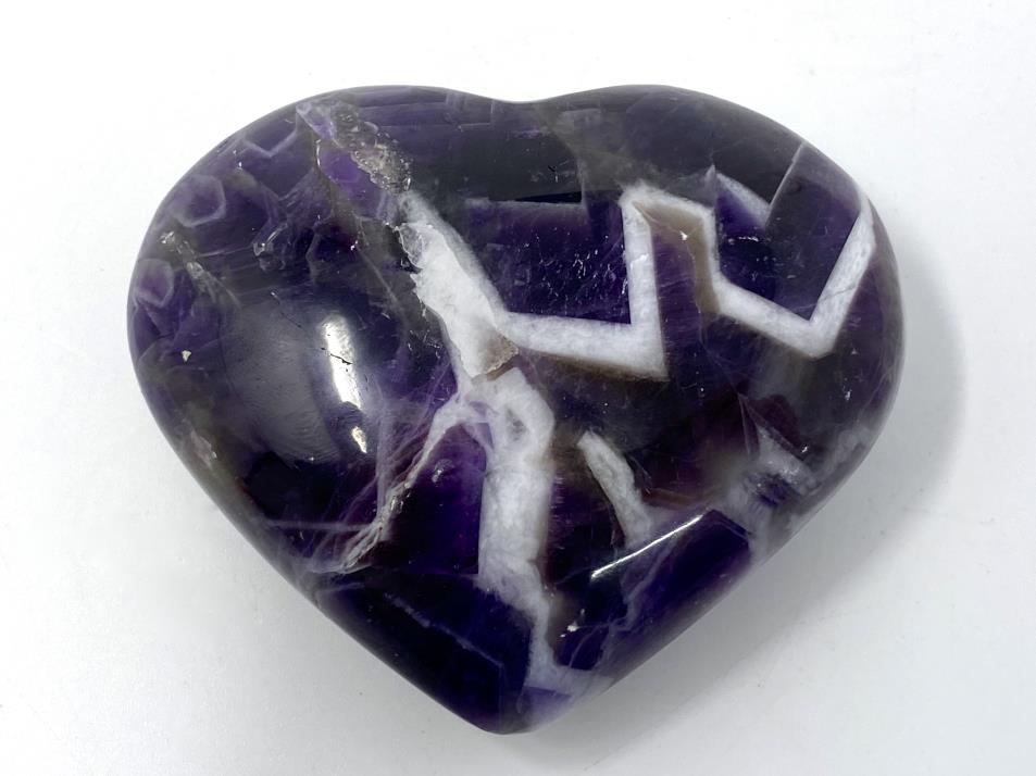 This high-grade purple Chevron Amethyst Heart Crystal measures 7.3cm wide.