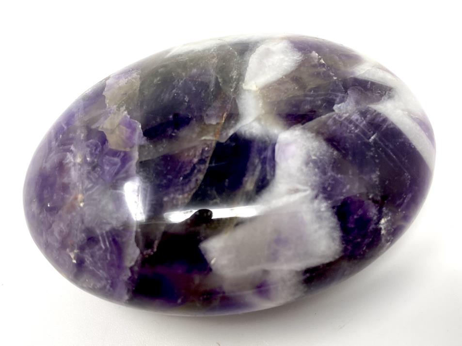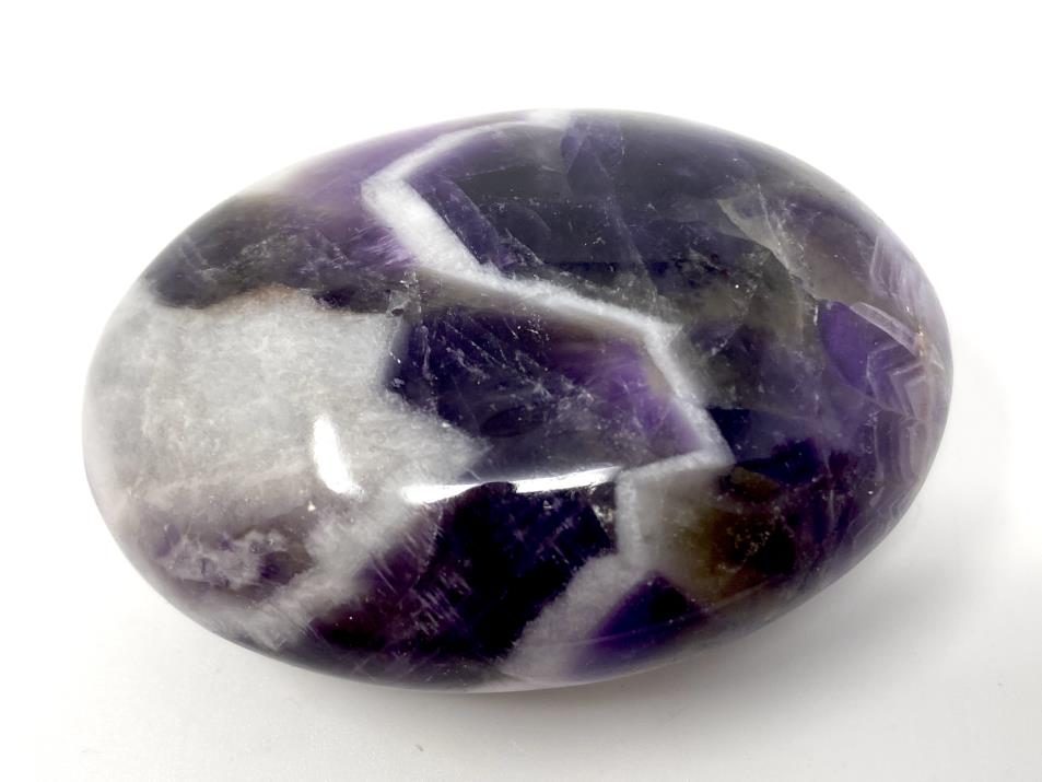 This high-grade purple Chevron Amethyst Pebble (otherwise known as a Chevron Amethyst Palm Stone) measures 6.2cm long.