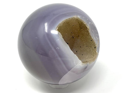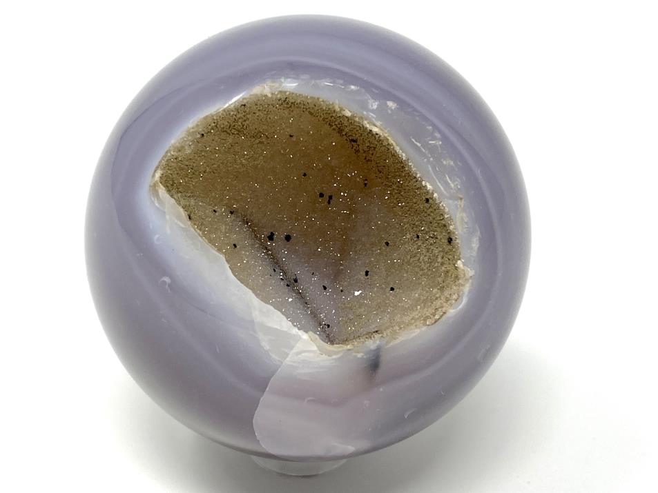 The Druzy Agate Geode Sphere has been carefully hand-polished to enhance the smooth, glossy lustre of the stone's surface, whilst retaining the large natural crystal geode cavity at its centre.