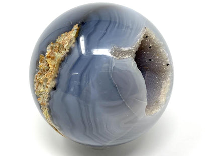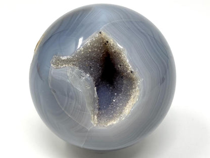 The Druzy Agate Geode Sphere has been carefully hand-polished to enhance the smooth, glossy lustre of the stone's surface, whilst retaining the large natural crystal geode cavity at its centre.