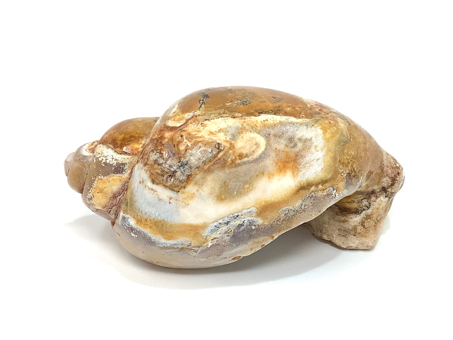 This Agatized Gastropod Fossil (or Silicified Gastropod Fossil) displays a beautiful Agatized Fossil Shell formed from colourful Chalcedony Replacements in rich white, orange, and brown hues.