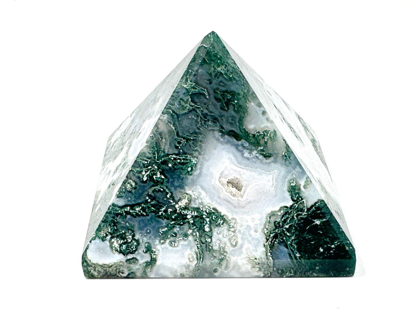 This gorgeous Druzy Moss Agate Crystal Pyramid is ideal for the crystal collector or crystal healer, and makes a wonderful crystal gift for loved ones.