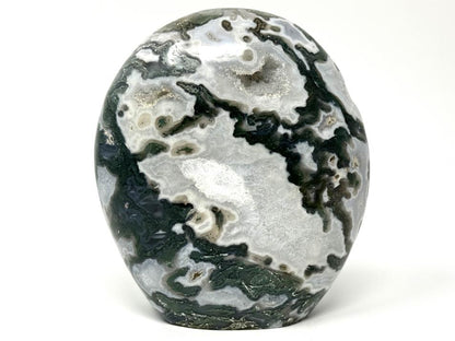 This Large Druzy Moss Agate Free Shape showcases stunning milky White Quartz/ White Agate adorned with dark and verdant green tree-like, moss-like dendritic patterns.