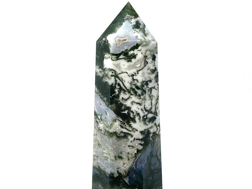 Moss Agate (Tree Agate) is a Stone of Growth and Stone of Transformation, believed to nurture people through the difficulties of new beginnings and help users navigate stumbling blocks along the roads to personal growth and transformation.