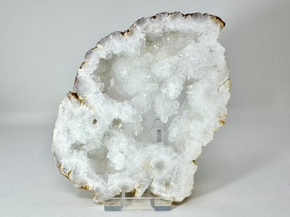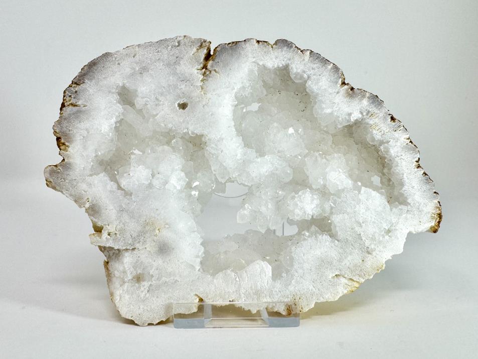 This stunning Druzy Quartz Geode Slice measuring 14cm long displays a gorgeous snow-white colour and sparkling druzy crystals.