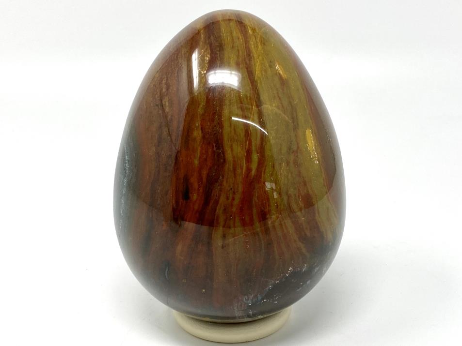 This highly polished Large Fancy Jasper Egg measuring 13.5cm tall displays a unique pattern of stunning rainbow colours.