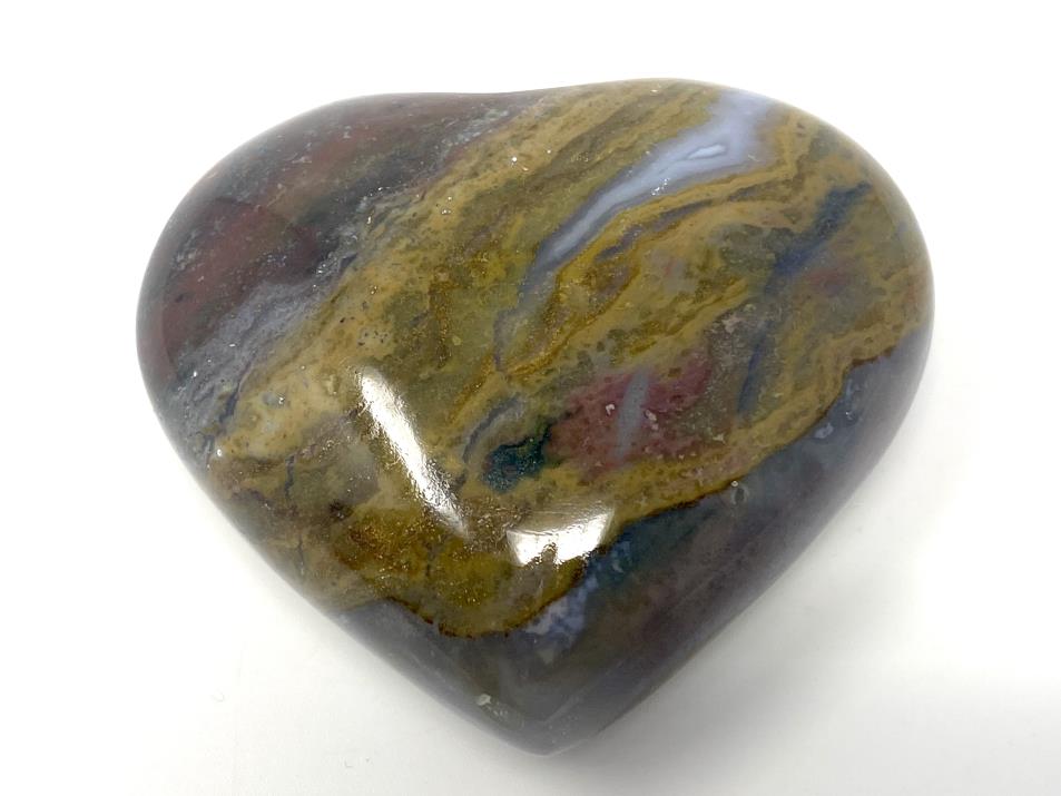 This highly polished Fancy Jasper Heart measuring 7cm wide displays a unique pattern of stunning rainbow colours.
