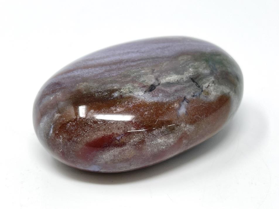 This highly polished Fancy Jasper Pebble measuring 6.2cm long displays a unique pattern of stunning rainbow colours.